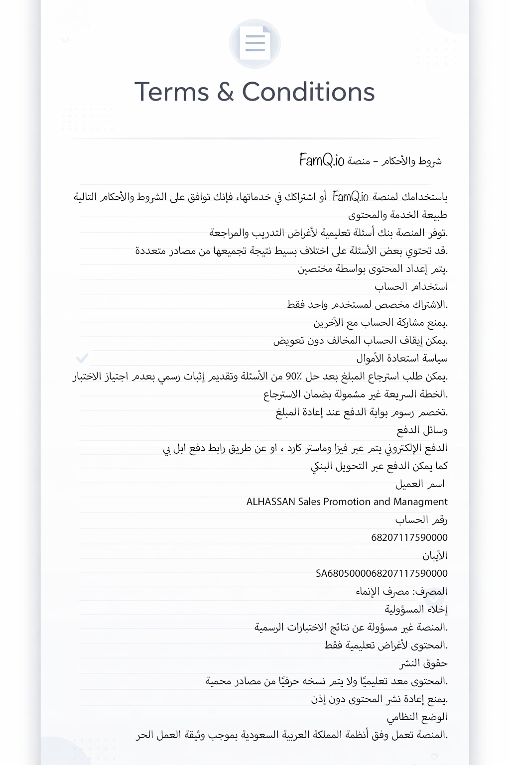 على خِلاف غيرها، تُتيح منصّة MedQ لعموم الأطباء والطبيبات استعادة المبلغ في حال عدم الإجتياز وذلك لثقتنا في المحاكاة الحقيقية للاختبار، بأسئلة وتجميعات مضمونة ومصححة.